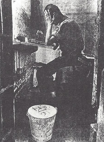 Image : L’une des cellules sèches « bucket » en usage de 1873 jusqu’à la fin des années soixante. (Journal The Standard, 1948). Livret commémoratif de la fermeture du pénitencier Saint-Vincent-de-Paul, 1873-1989. Gouvernement du Canada, 1989, p. 11.