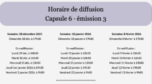 Nous vous invitons à consulter l’horaire de diffusion ci-dessous.