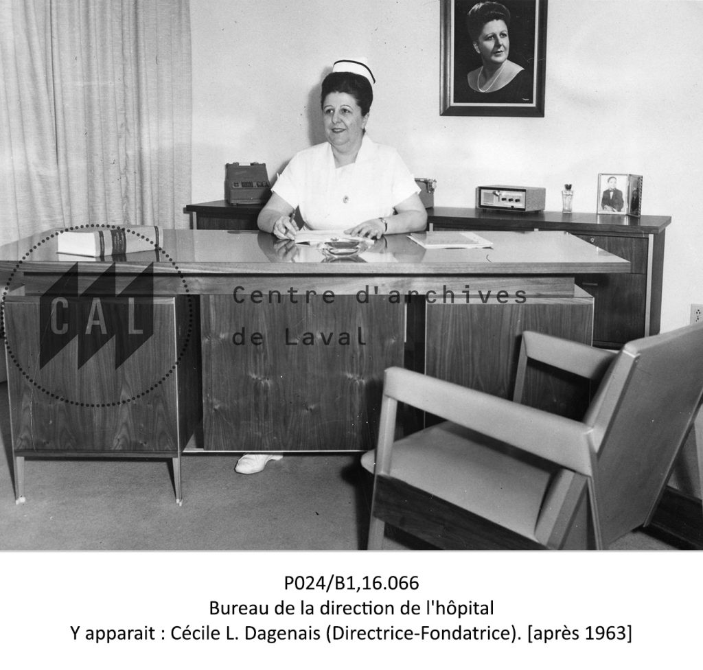 Autre personnalité majeure de l’histoire des services de santé à Laval, Cécile Lalande-Dagenais débute sa carrière d’infirmière en 1947. Elle travaille alors en salle d’opération. C’est le 10 novembre 1957 qu’elle crée, avec quelques partenaires, le premier Hôpital général de Sainte-Rose. Tout d’abord situé dans une maison familiale au 147, Plateau Ouimet, il est éventuellement déplacé dans un édifice plus grand au 240, Roi du Nord. Cécile L. Dagenais dirige alors cet établissement qui compte une trentaine de lits. L’ancien hôpital, lui, est transformé en école de gardes-malades! Durant toutes les années soixante, Cécile L. Dagenais reste une actrice majeure du développement des soins de santé à Laval.